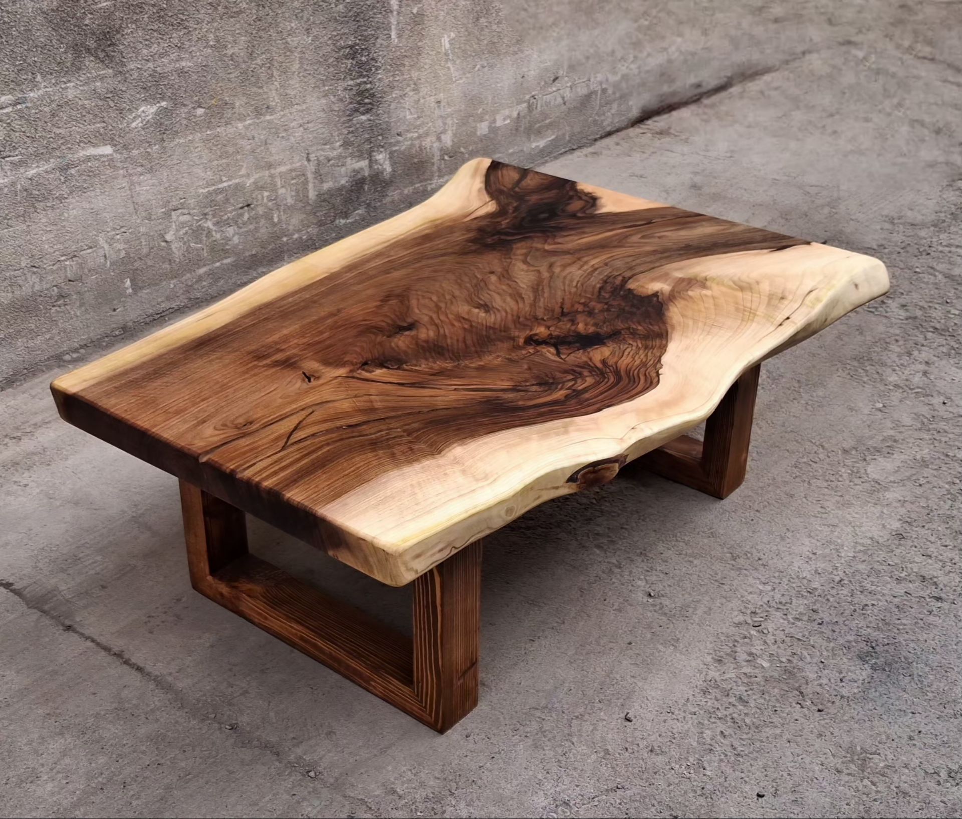 میز تلویزیون رستیک چوب و رزین با پایه چوب و آهن